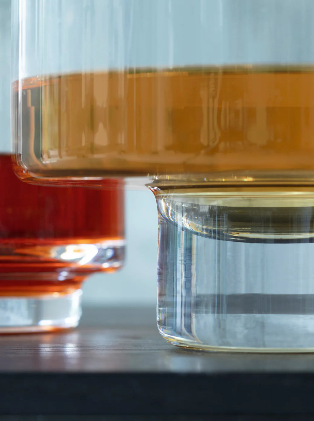 Inspired by the architecture of the city of Kiev, this Decanter and Tumbler set is unmissable. The dramatic round angles are sure to make any beverage of choice absolutely stunning. This Decanter and Tumbler set comes in combination of one 1.8L decanter and four 10 oz matching tumblers .