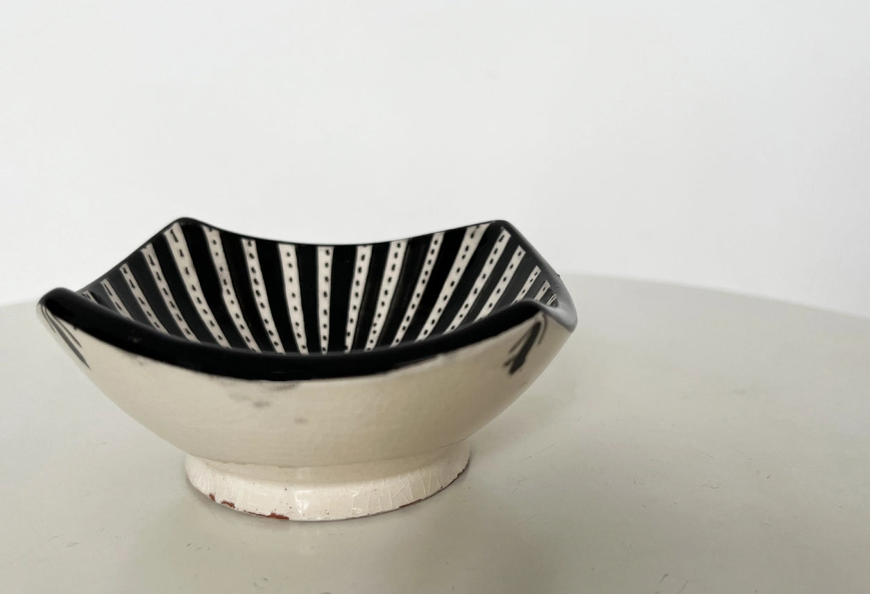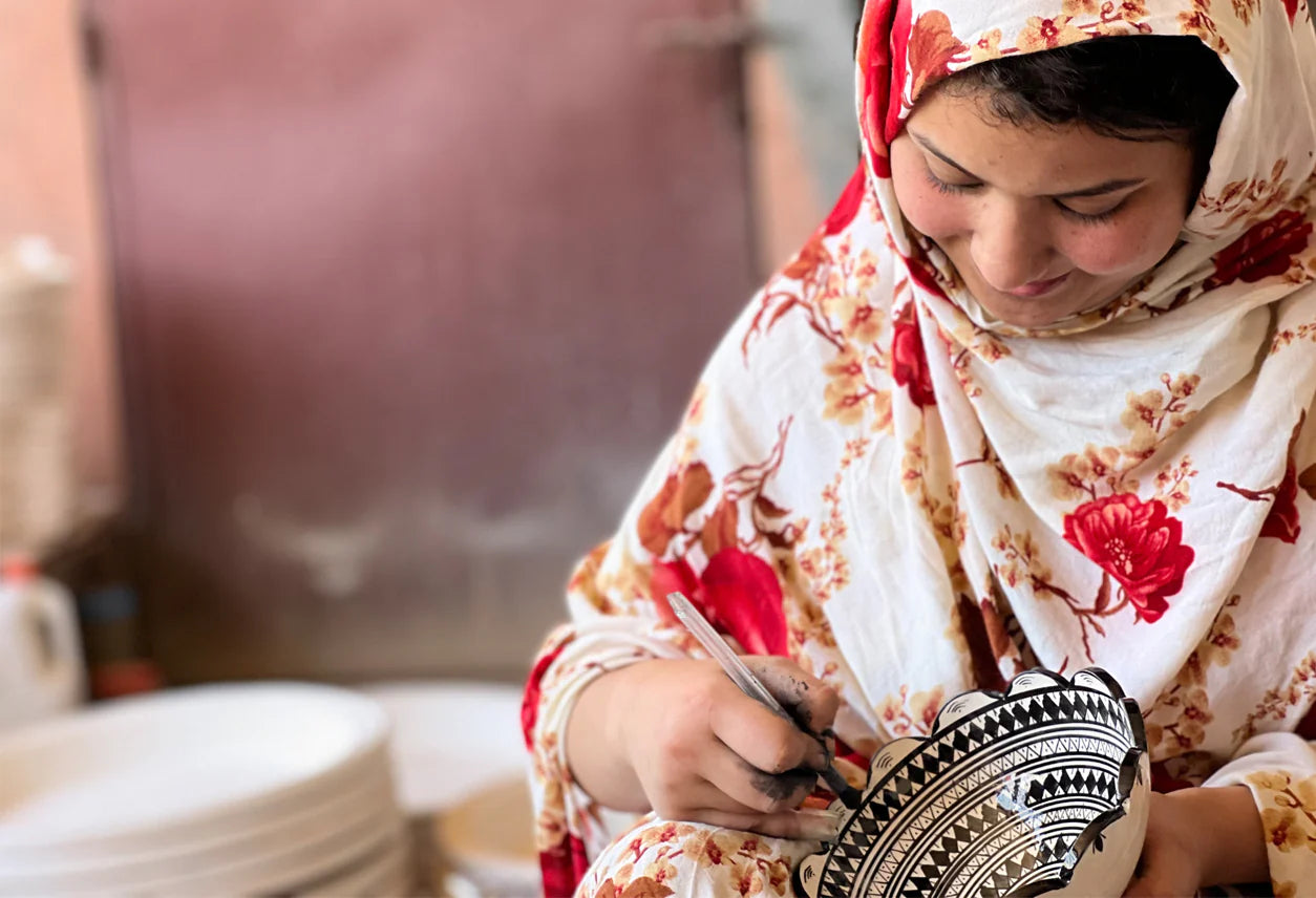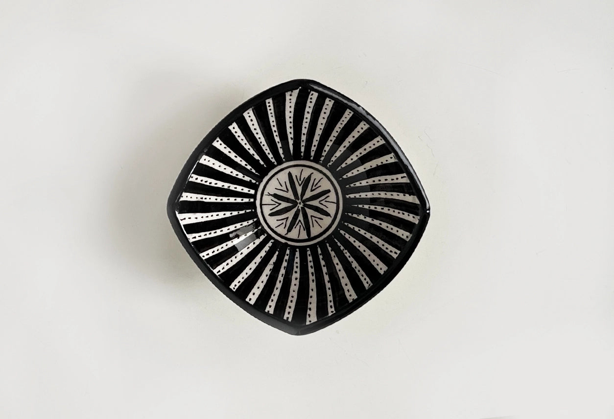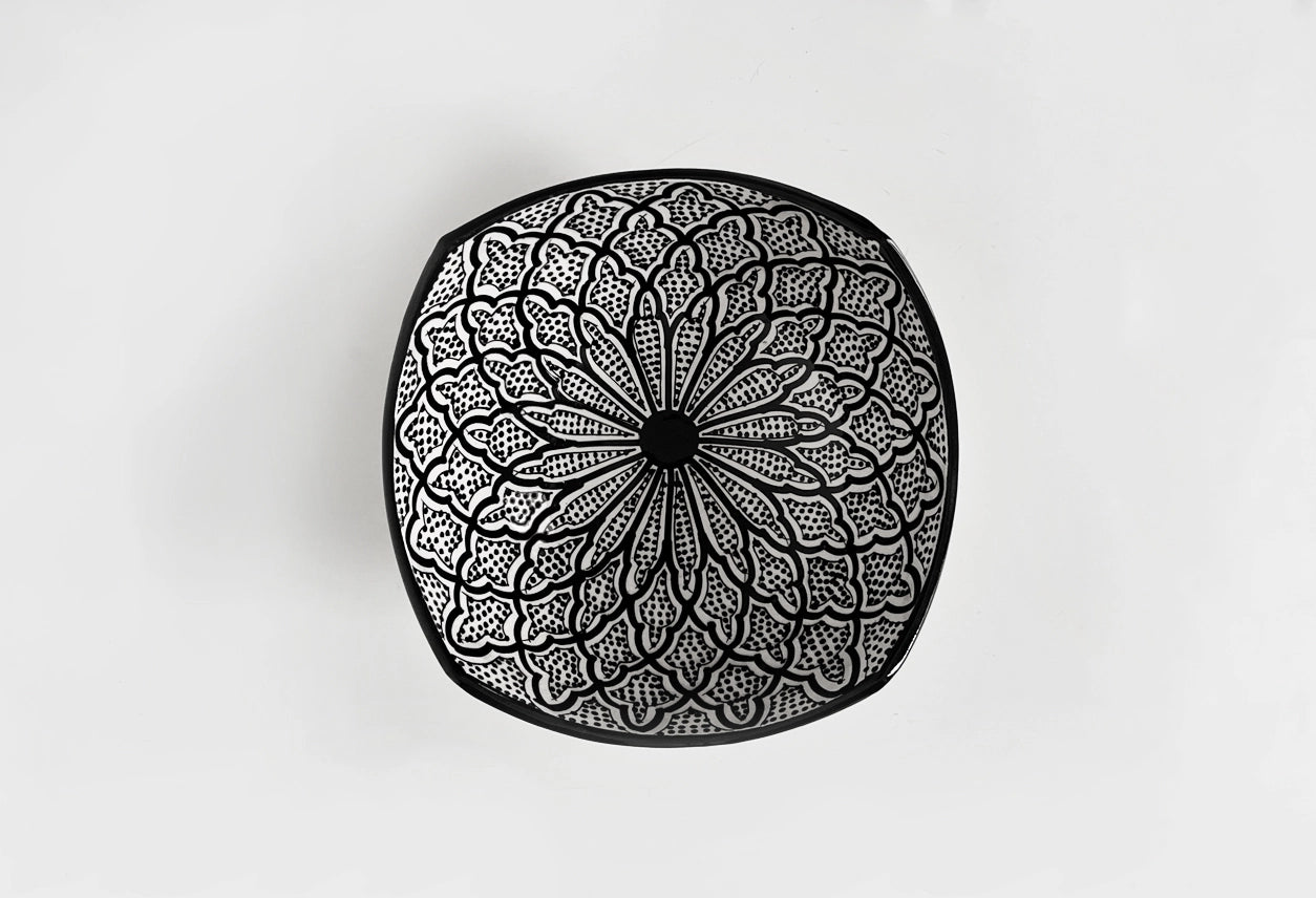 Safi, Morocco, an industrial port town on the rugged Atlantic coast, isn’t a place where tourists flock—but pottery lovers make pilgrimages there to see the stunning ceramics that Safiot artisans have made for centuries. These dishes, with their stunning geometric arabesques, are especially vivid examples of their art. From extracting local clay from the ground, to preparing it, molding it, drying it, shaping it, hand-painting it and firing it, they’re created completely by hand using ancient production methods. On your counter or dinner table, they'll add vibrant, timeless style to whatever you're serving. Handmade in Morocco. Due to the handmade nature of this item, each is unique and will vary.