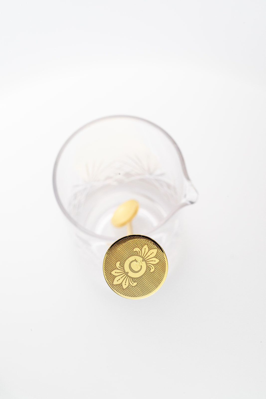 Cocktailery Lifestyle  Heavy Bottom Etched Mixing Glass with Mixing Spoon in Gold or Silver