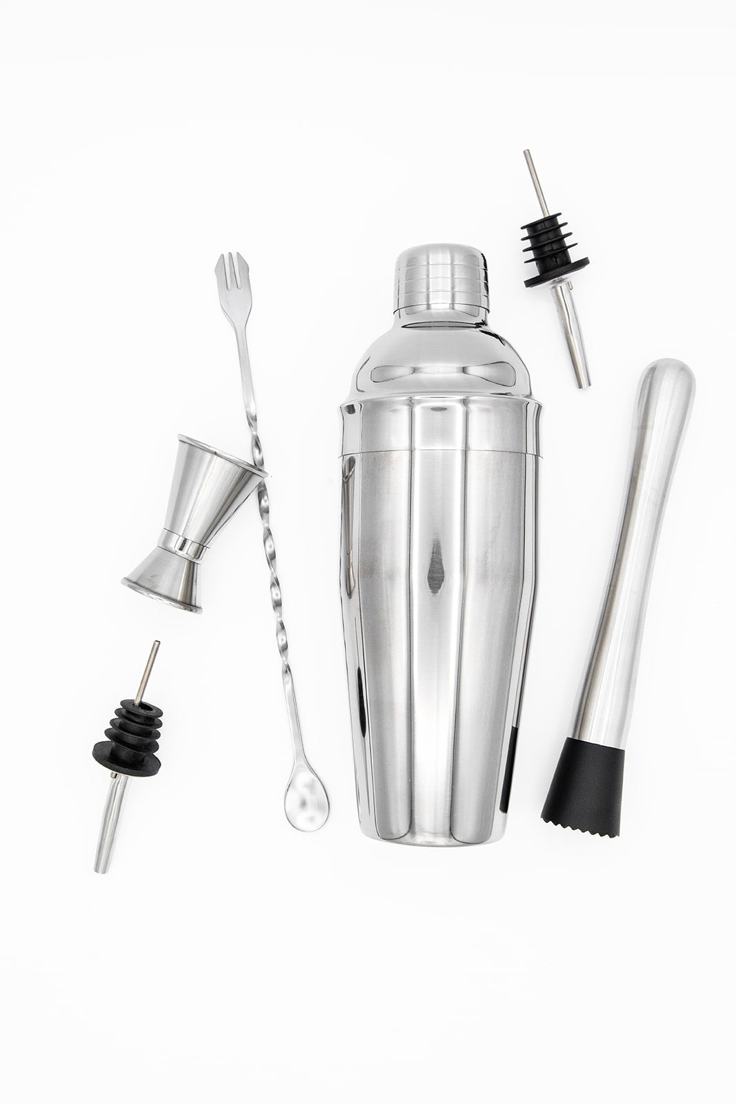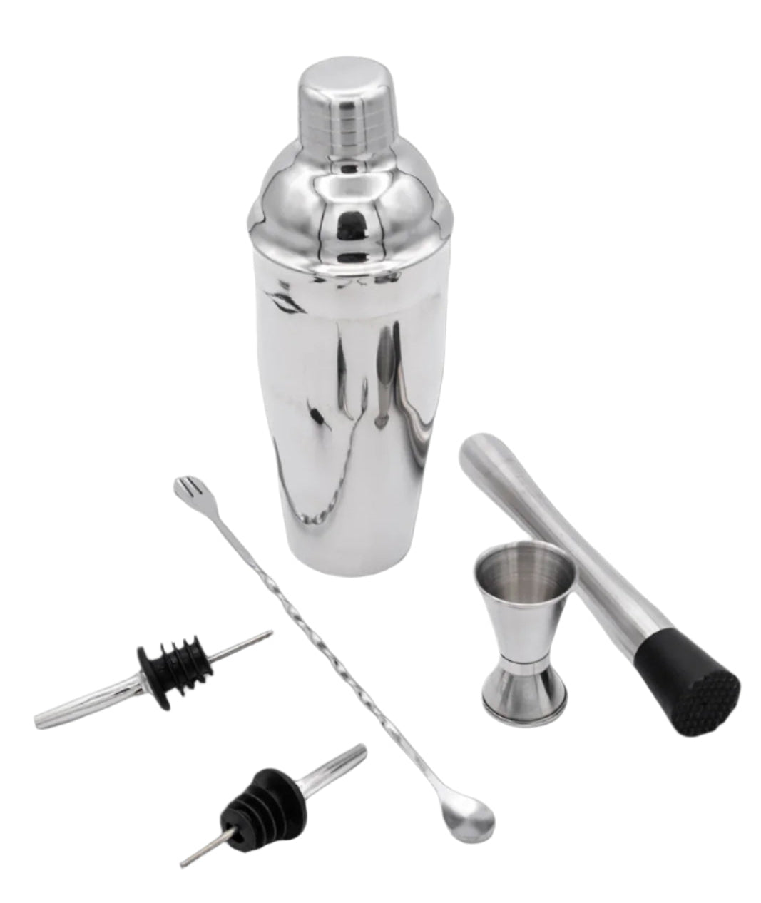 Our Cocktailery Lifestyle 6-Piece Bartender Cocktail Shaker Set is made of durable stainless steel, this set includes all the essential tools for crafting perfect cocktails. Impress your guests and elevate your mixology skills with this must-have set.