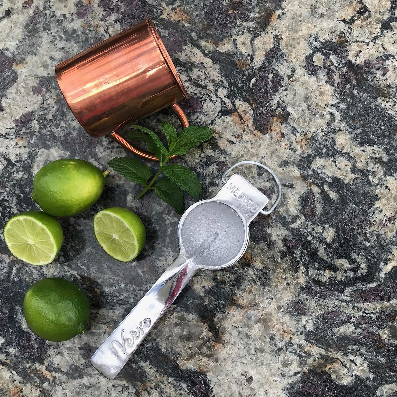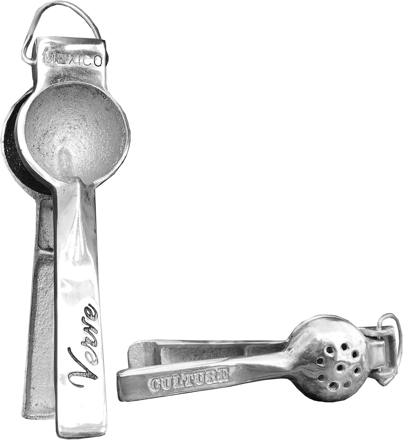 Quick and easy to use, this aluminum hand juicer is ideal for every kitchen or bar. Made by talented aluminum artisans in Mexico, this cast hand squeezer is the perfect fit for fresh lemon and lime juice.